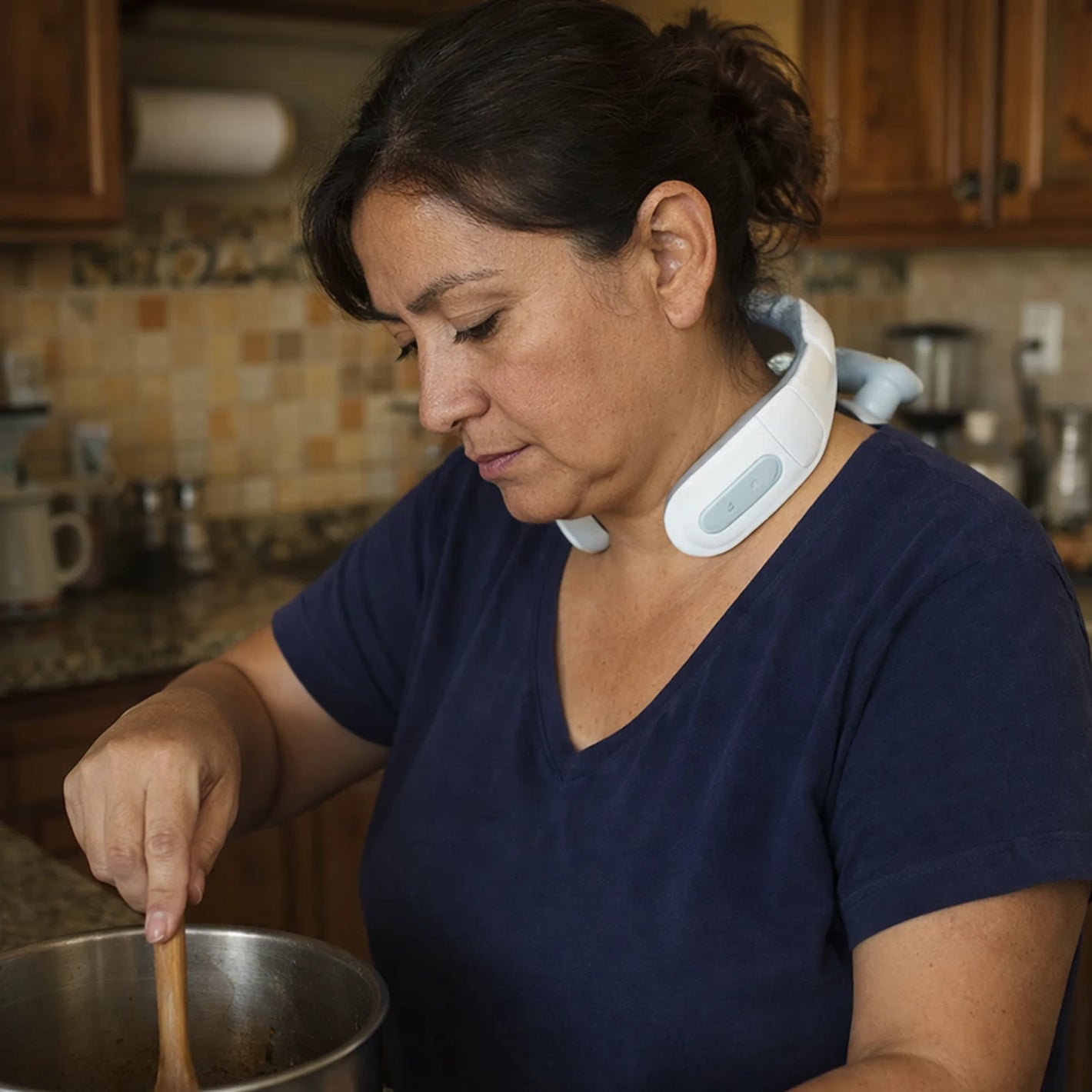 Probé incontables soluciones antes, pero este dispositivo fue el único que mejoró mi calidad de vida. La tensión incomoda de mi cuello disminuyó poco a poco.
